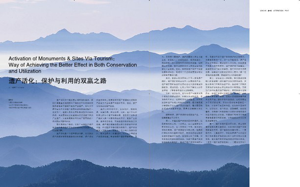 关注 遗产活化:保护与利用的双赢之路 喻学才 欲善其事,先利其器——旅游规划专家喻学才教授访谈 二十五史可否活化?——关于义乌历史长河主题公园规划的回顾 喻学才 历史长河景区详细规划诞生记 朱光亚 郑捷 上下五千年,纵横九万里——关于江西定南县神仙文化和风水文化遗产活化 探索案例□ 喻学才 卜春斌 湖北木兰湖明清古民居迁建项目 喻学才 杨慧 名人故居遗产活化——台北蒋经国故居案例分析 钟行明 李常生 木渎古镇寿桃湖项目区采石遗产活化案例研究□喻学才 汤占伟