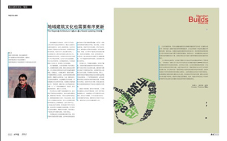 地域建筑文化 汶川县岷江东岸景观道路市政建设综合工程设计 四川省建筑设计院建筑景观所 地域建筑文化也需要有序更新 徐卫 深圳建造专题 第四届深圳•香港城市/建筑双城双年展组委会 观察根须扎入泥土的轨迹 蒋勇杰 简述四川古镇景观色彩及其成因 张莉 胡丹 李丽 吴沁竺 新场古镇,长引思古之幽情——记成都市大邑新场古镇保护开发之路 徐耘 索尔青城客房集群组合体 周勇刚 曾泰 兰岸 现代设计中的运用 李欣恺、张碚贝