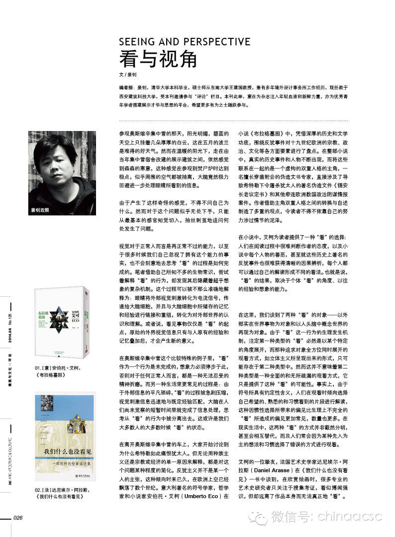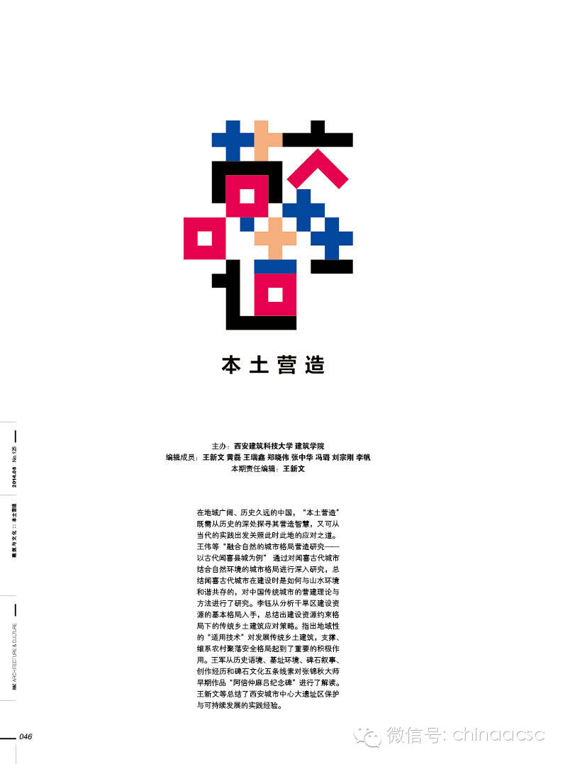 ------------------------------------------- 点击右上角按钮可分享朋友圈,查看公众帐号可关注我们。 《建筑与文化》杂志微信号:chinaacsc 投稿邮箱:chinaacsc@qq.com QQ:154961786,450006882 Tel:18652077144,18905155767